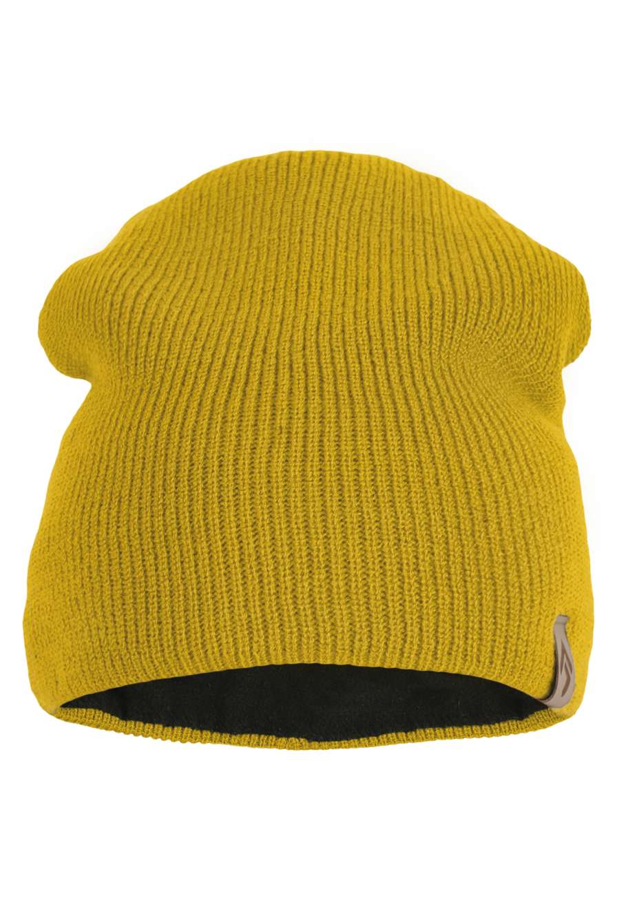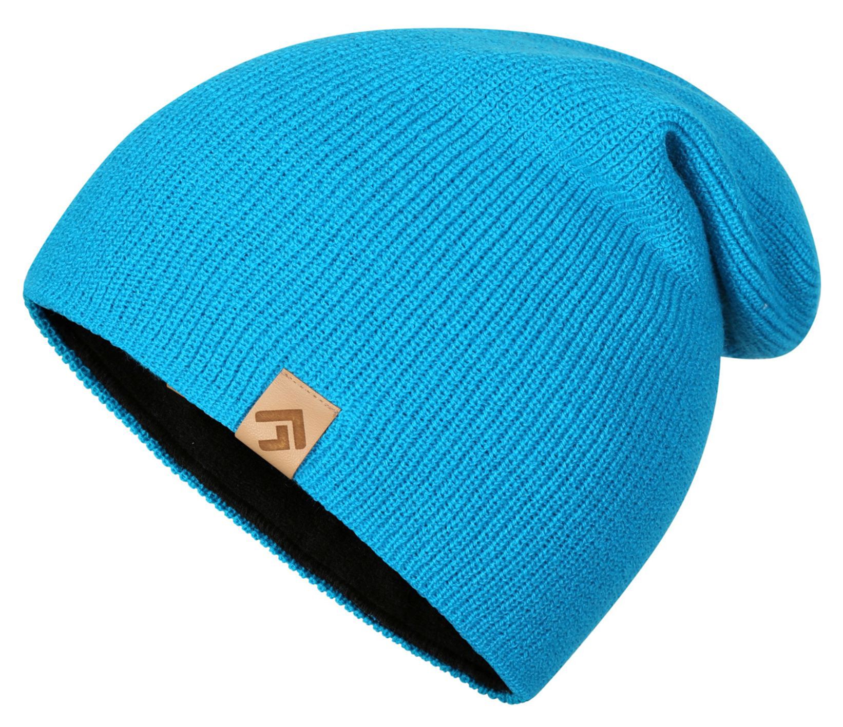 Modern beanie with a brim, made from breathable acrylic knit with an inner fleece layer.