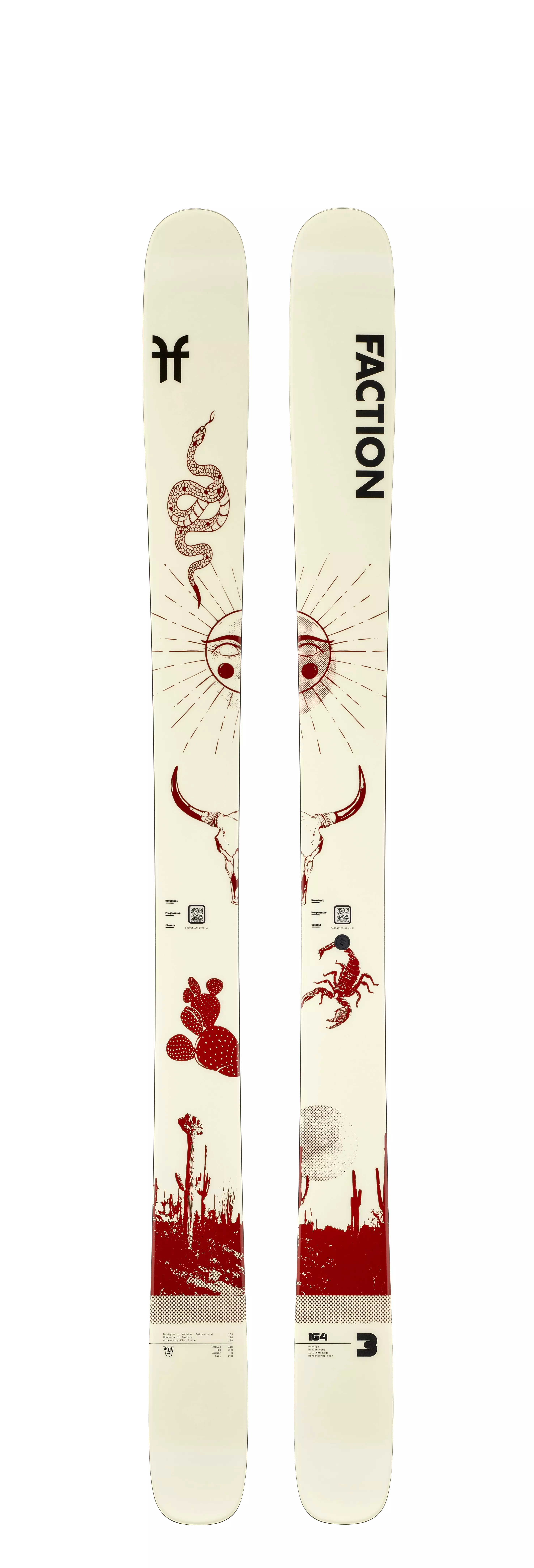 Обмислено изработена от издръжливите горни слоеве до перфектно завършените основи, серията Prodigy представлява всичко, което Faction представлява: Прогресия. Отзивчивите дървени ядра, насочените twin-tip форми и гъвкавите camber линии осигуряват вдъхновяващо представяне. Бързо реагиращи на командите и изключително лесни за управление, ските Prodigy са създадени, за да подобрят играта на скиорите.