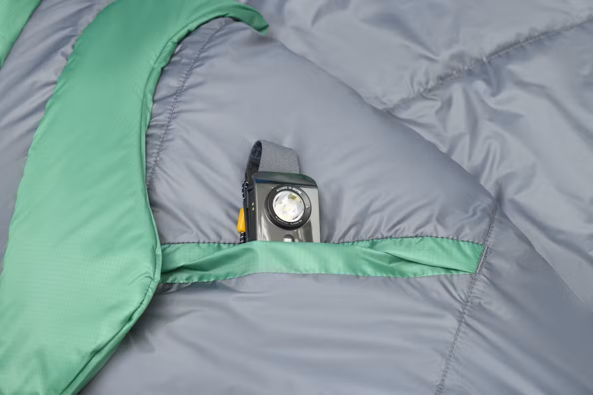 Пълният цип от лявата страна с плъзгач против засядане и допълнителният къс цип от дясната позволяват прецизен контрол на температурата и усещане като под уютно одеяло. Сертифицираната по ISO температурна оценка гарантира, че чувалът ще се справи отлично, дори когато температурите паднат до нулата. Вътрешният джоб е идеален за съхранение на контактни лещи или челник, а включената компресионна торба позволява лесно стягане, прибиране и потегляне – независимо дали за седмица или за уикенда.