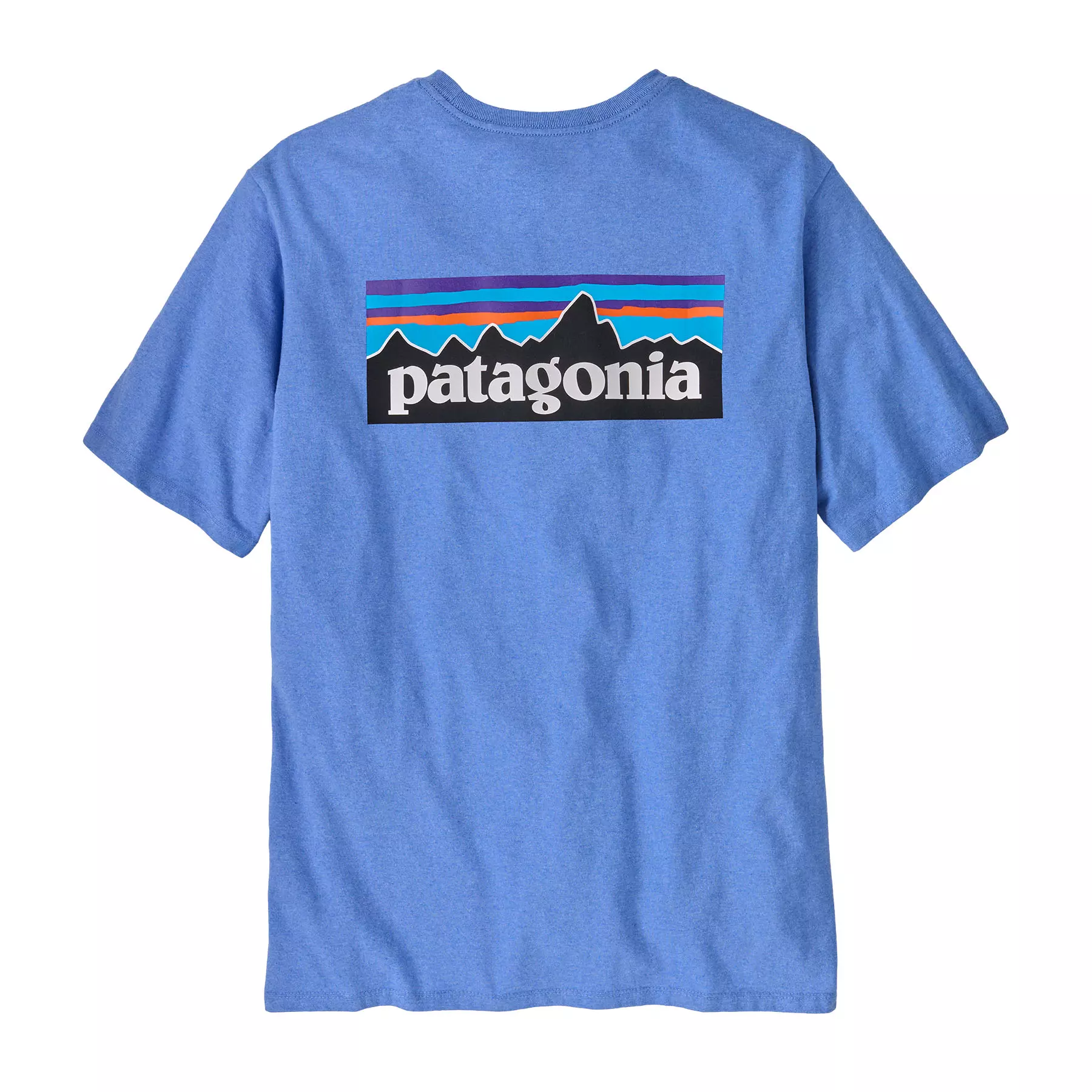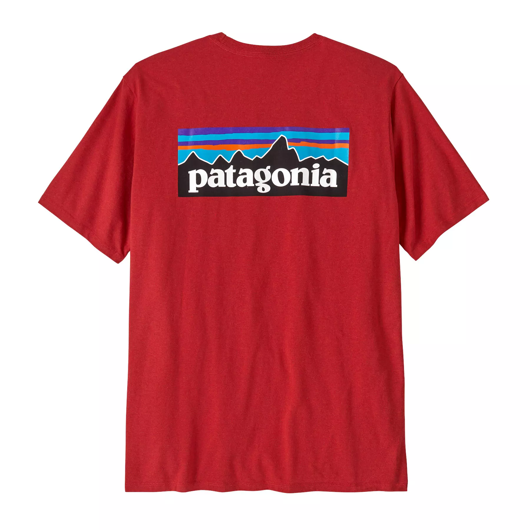 Класическа графика върху тениската с най-нисък въглероден отпечатък на Patagonia, която е направена от рециклирани тъкани. Чрез използването на остатъци от тъкани и рециклирани бутилки, тази тениска, изработена от 100% рециклирана тъкан, намалява зависимостта ни от чисти материали.